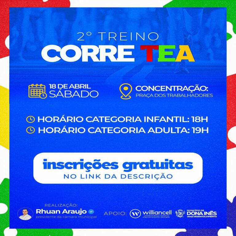 O município de Dona Inês realizará, no próximo dia 18 de abril (sábado), o 2º Treino Corre TEA, evento voltado à inclusão e à conscientização sobre o Transtorno do Espectro Autista (TEA). A concentração acontecerá na Praça dos Trabalhadores. A programação contará com duas categorias: • Infantil, com início às 18h. • Adulta, com início […]